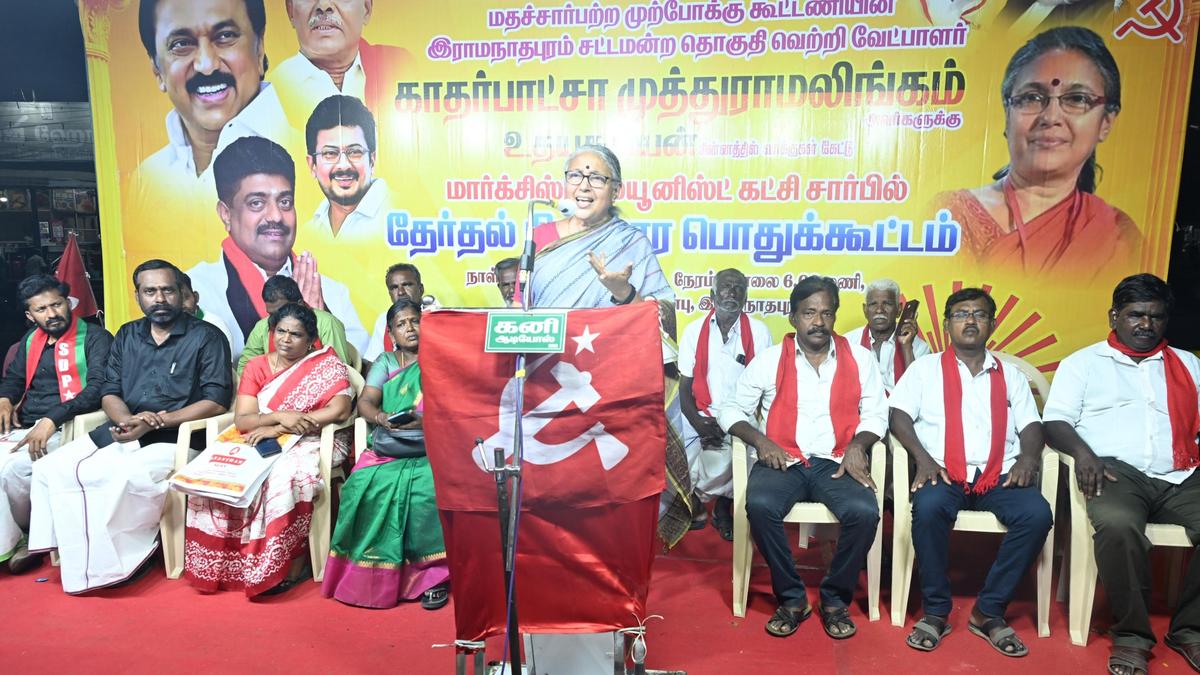 While campaigning in favour of Ramanathapuram constituency DMK candidate Katharbatcha Muthuramalingam here on Thursday, she said, “The upcoming election is one that will determine the future of the people of Tamil Nadu. All policies and laws introduced by the Modi government are harmful to the working-class people. The BJP is a party that divides people in the name of religion.”