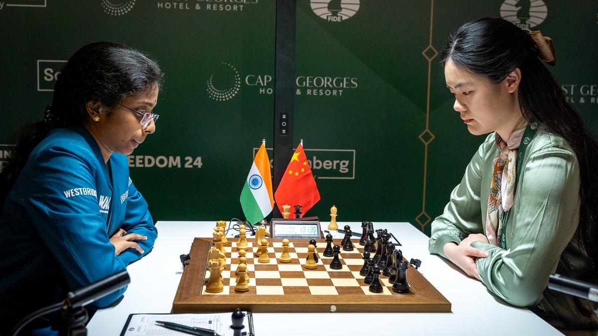Zhu Jiner capitalised on Vaishali’s error to hand the Indian her second loss. | Photo Credit: FIDE In what was one of the most important games in the Women’s Candidates chess tournament, Zhu Jiner defeated sole leader R. Vaishali with black pieces in the 12th round at Pegeia, Cyprus, on Sunday. With the win, Zhu has caught up with her Indian rival at the top of the table. They both have seven points each, going into the final rest day on Monday. Half-a-point behind them are Bibisara Assaubayeva and Anna Muzychuk, with two rounds remaining. Published – April 13, 2026 12:37 am IST Share this: Click to share on WhatsApp (Opens in new window) WhatsApp Click to share on Facebook (Opens in new window) Facebook Click to share on Threads (Opens in new window) Threads Click to share on X (Opens in new window) X Click to share on Telegram (Opens in new window) Telegram Click to share on LinkedIn (Opens in new window) LinkedIn Click to share on Pinterest (Opens in new window) Pinterest Click to email a link to a friend (Opens in new window) Email More Click to print (Opens in new window) Print Click to share on Reddit (Opens in new window) Reddit Click to share on Tumblr (Opens in new window) Tumblr Click to share on Pocket (Opens in new window) Pocket Click to share on Mastodon (Opens in new window) Mastodon Click to share on Nextdoor (Opens in new window) Nextdoor Click to share on Bluesky (Opens in new window) Bluesky Like this:Like Loading... Post navigation Letters to the Editor — April 13, 2026 Girls have the edge in landing IT sector jobs: academician